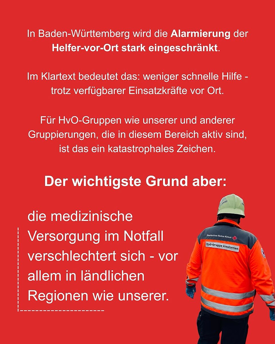 In Baden-Württemberg wird aktuell die Alarmierung von Helfer-vor-Ort-Gruppen (HvO) stark eingeschränkt. Was auf dem Papier nach Struktur klingt, bedeutet in der Realität vor allem eins: weniger schnelle Hilfe – obwohl qualifizierte Einsatzkräfte in unmittelbarer Nähe verfügbar wären