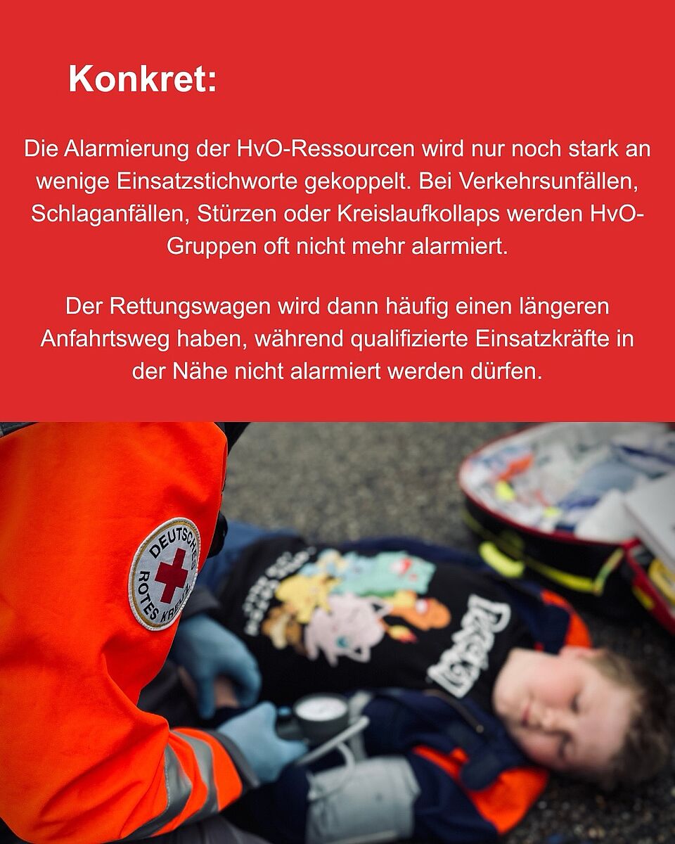 Wenn bei Notfällen wie Schlaganfällen, Verkehrsunfällen oder Kreislaufproblemen keine HvO alarmiert werden, zählt jede Minute doppelt. Der Rettungsdienst braucht länger – wertvolle Zeit geht verloren